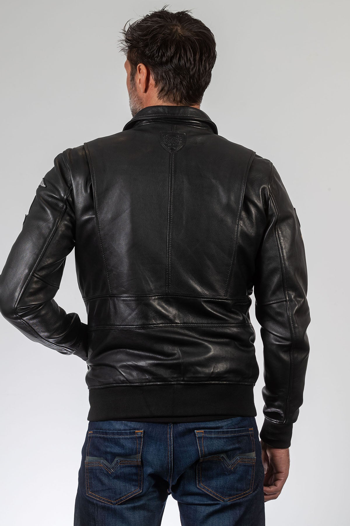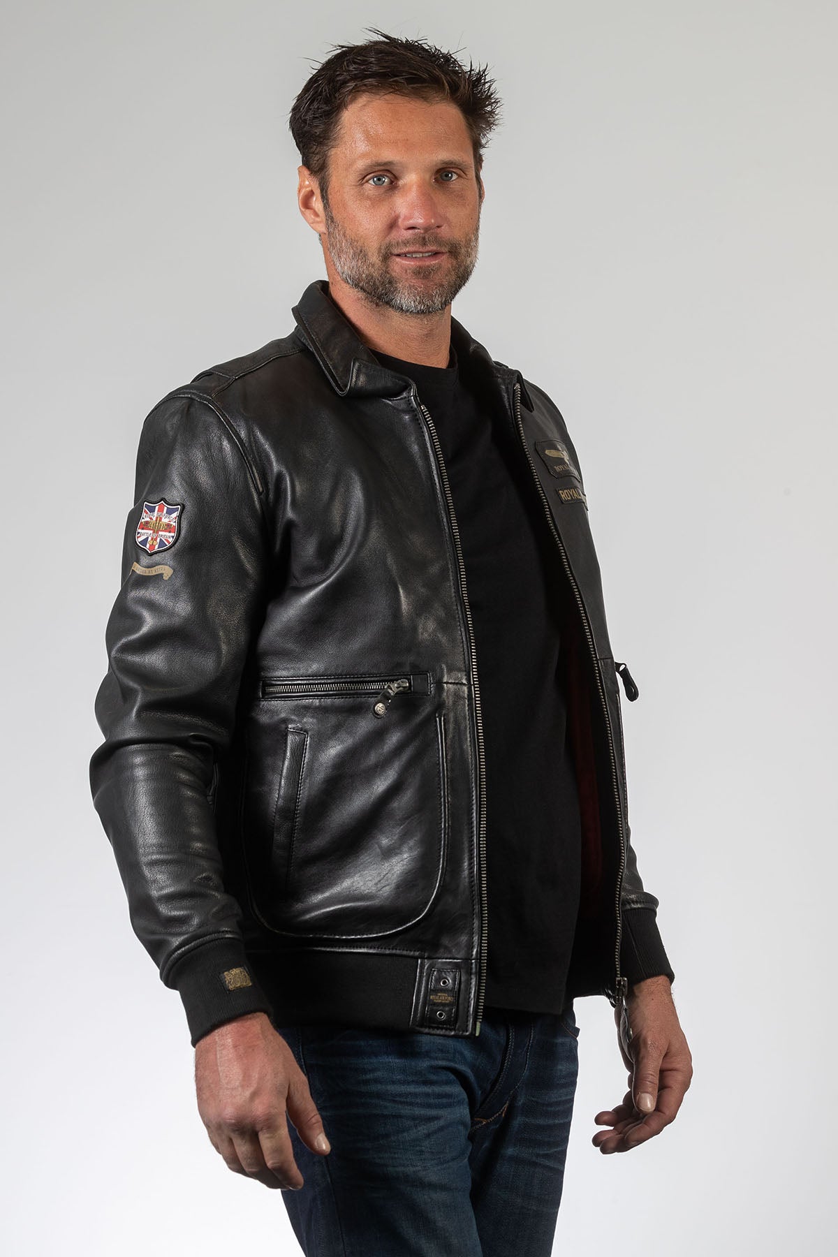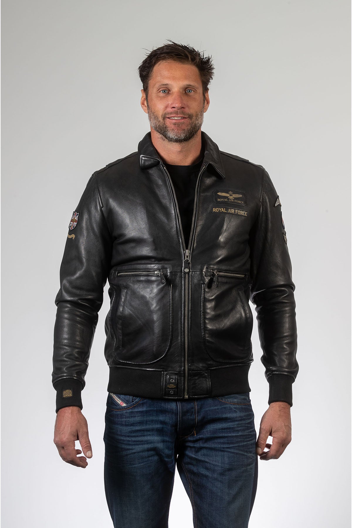 Blouson en cuir Royal Air Force Trenchard noir Homme