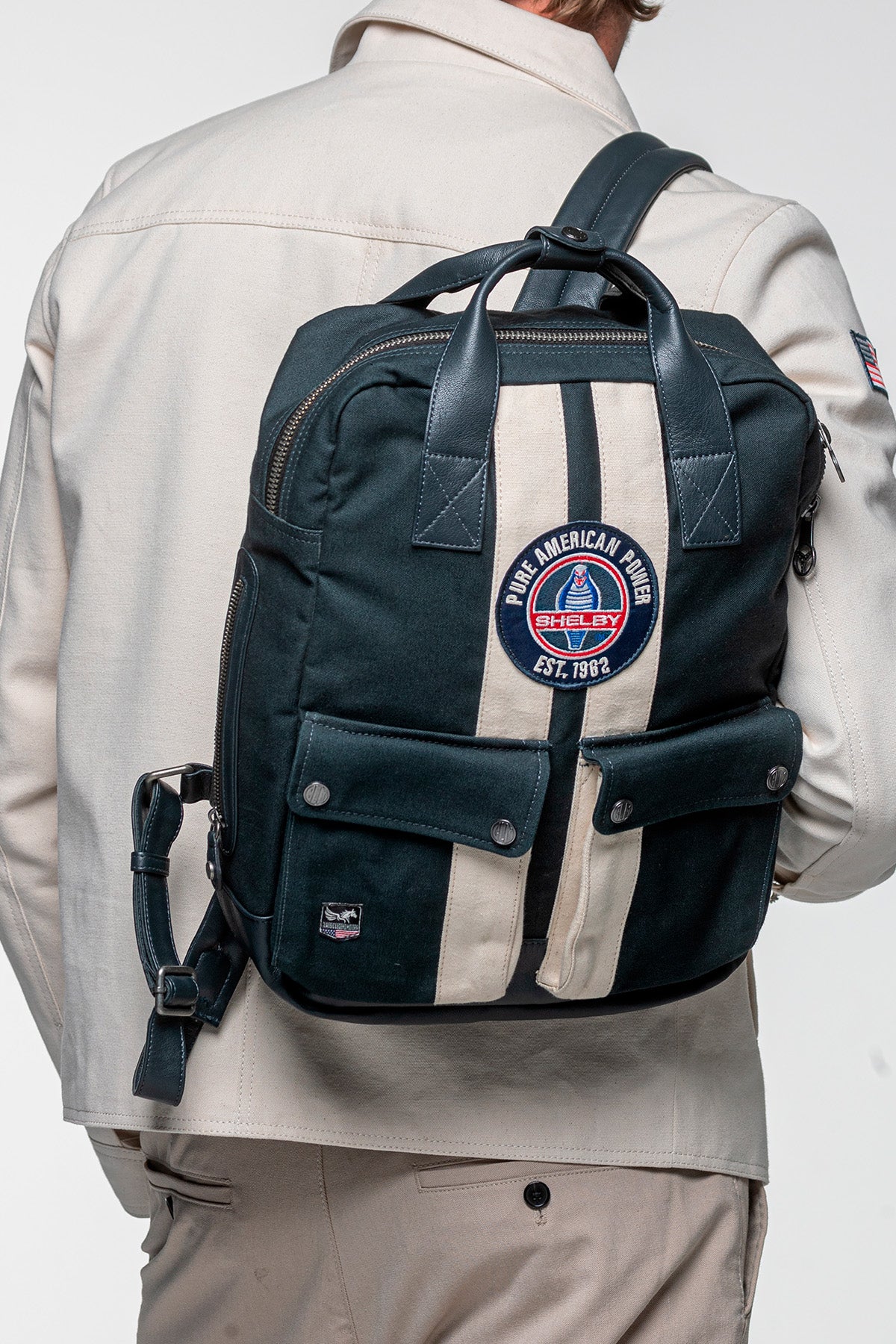 Sac à dos en cuir et canvas Carroll Shelby GT40 Backpack bleu marine