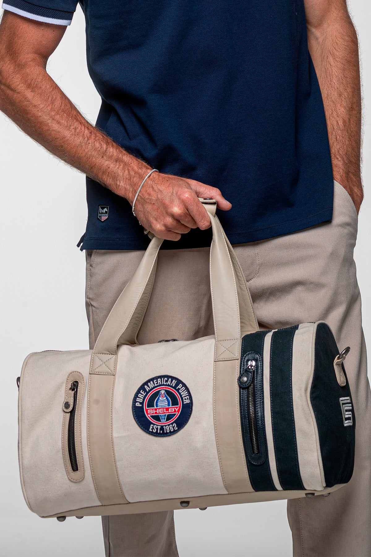 Sac de sport en cuir et canvas Carroll Shelby "Venom" écru